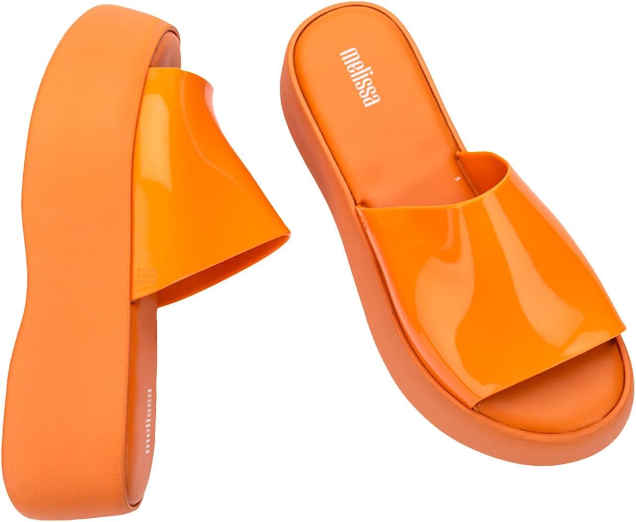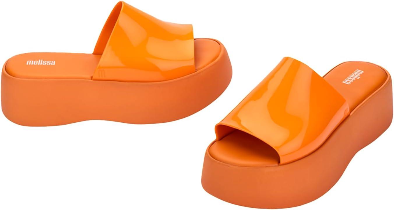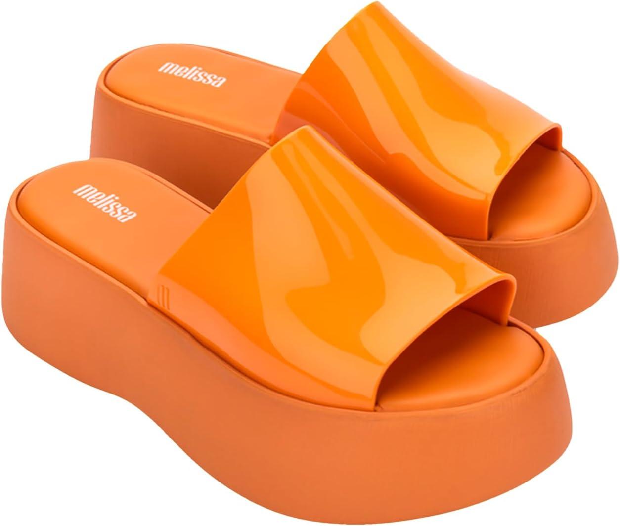 Melissa Becky Platform Slides for Women – Cushioned and Comfortable Chunky Platform Slip-On Sandals with Jelly Upper and Open Toe Design, Vegan(Orange)
