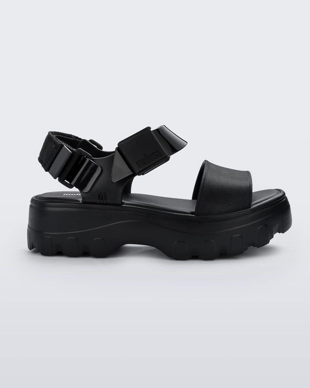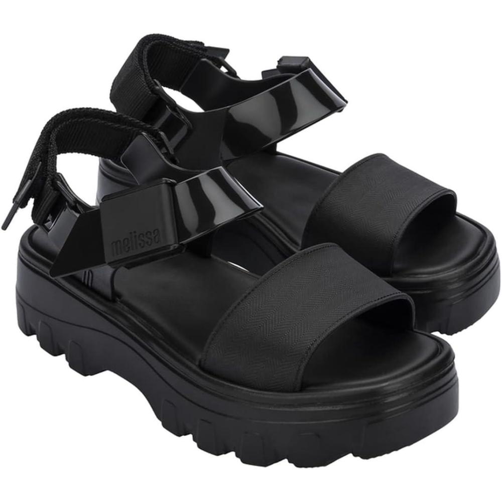 Melissa Kick Off Platform Sandals for Women – Super Soft and Flexible Vegan Chunky Platform Sandal with Adjustable Straps and Open Toe Design(Black/Black)