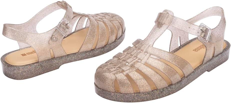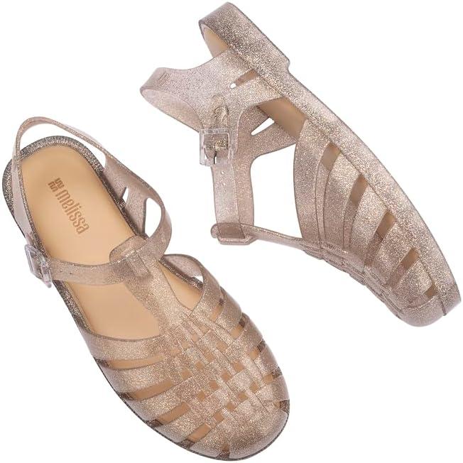 Melissa Possession Jelly Sandals for Women – The Original Jelly Shoes, Fisherman’s Sandals with Adjustable Strap and Side Buckle(Beige Silver Glitter)