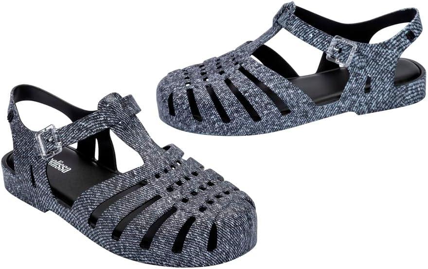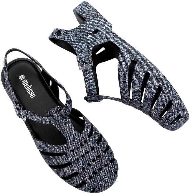 Melissa Possession Jelly Sandals for Women – The Original Jelly Shoes, Fisherman’s Sandals with Adjustable Strap and Side Buckle(Black Jeans)