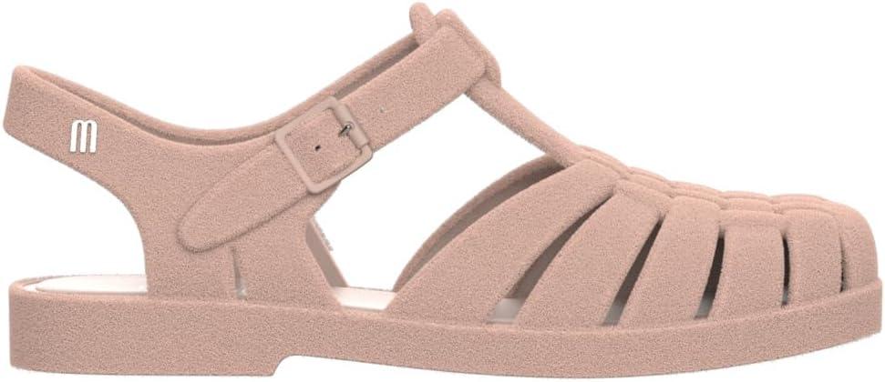 Melissa Possession Jelly Sandals for Women – The Original Jelly Shoes, Fisherman’s Sandals with Adjustable Strap and Side Buckle(Light Pink Flocked)