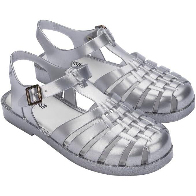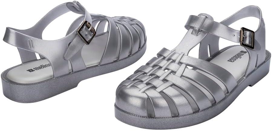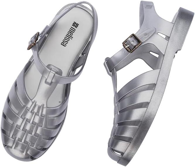 Melissa Possession Jelly Sandals for Women – The Original Jelly Shoes, Fisherman’s Sandals with Adjustable Strap and Side Buckle(Magic – Silver)